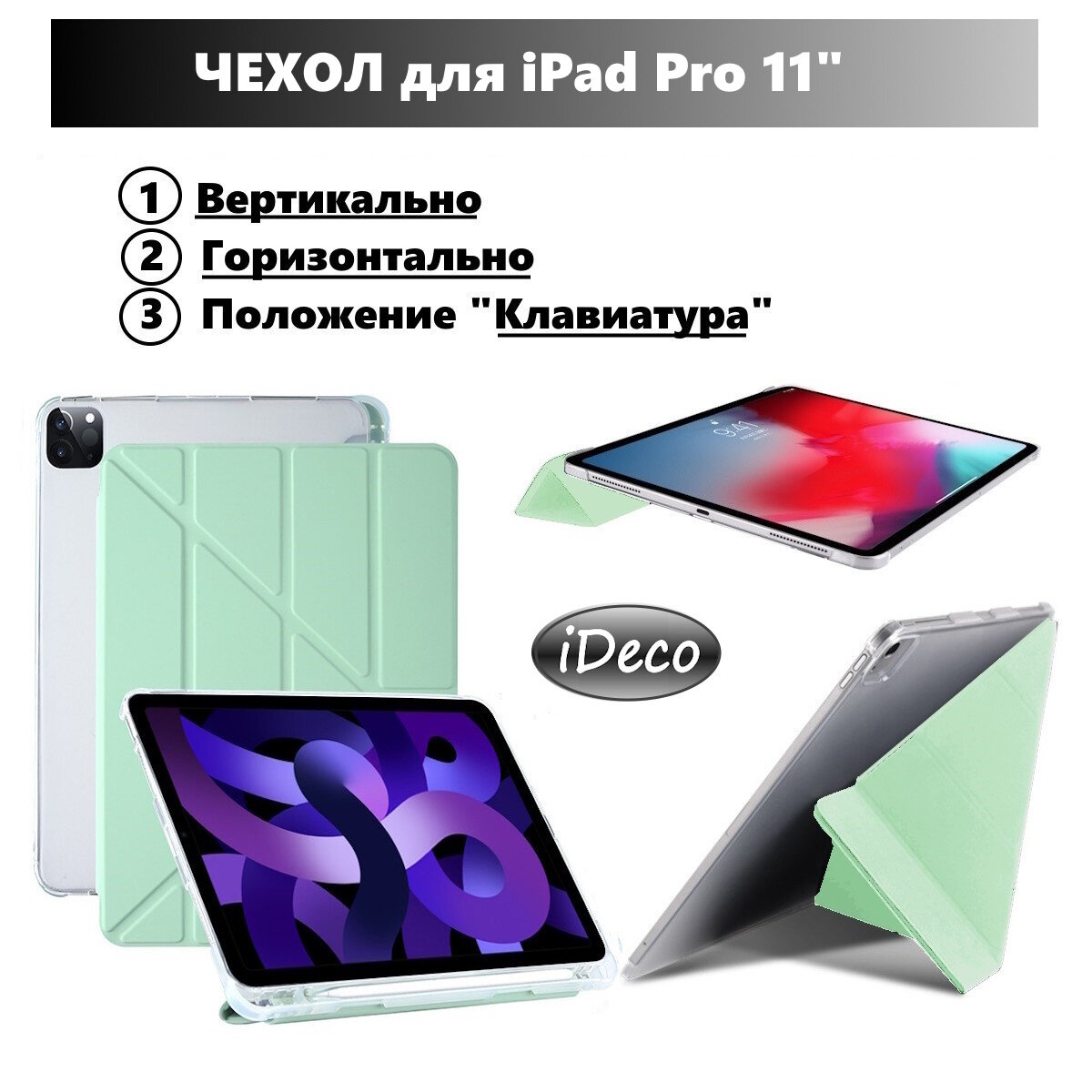 Чехол для iPad Pro 11 (2018-2022гг) горизонтальный и вертикальный умный чехол трансформер для iPad, с местом для стилуса, Салатовый информация: