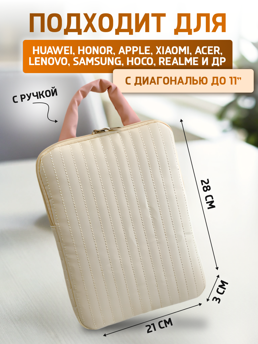 Чехол для планшета, сумка, стёганная, мягкая бежевая с ручкой 2 280 ₽