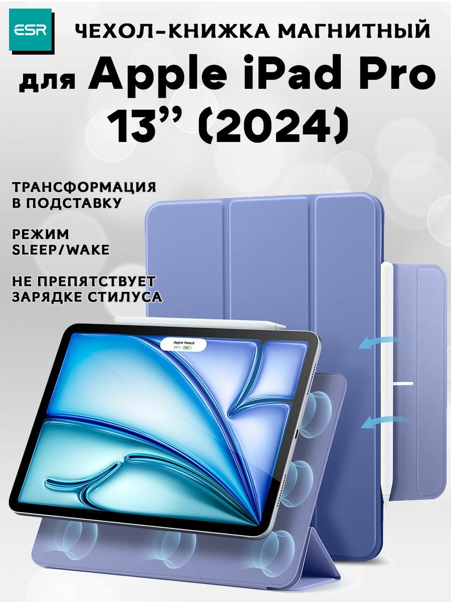 Чехол книжка ESR Rebound Magnetic Case с застежкой для Apple iPad Pro 13 (2024), сиреневый информация: