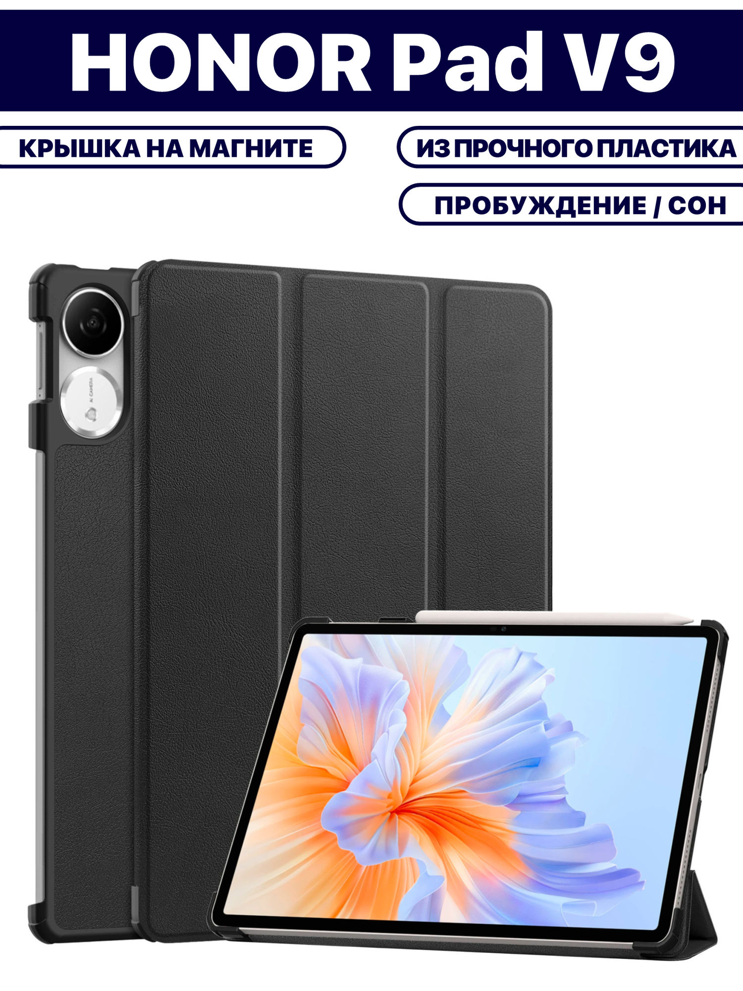 Чехол для планшета HONOR Pad V9 (11.5 дюйма), с магнитом, прочный пластик, черный информация: