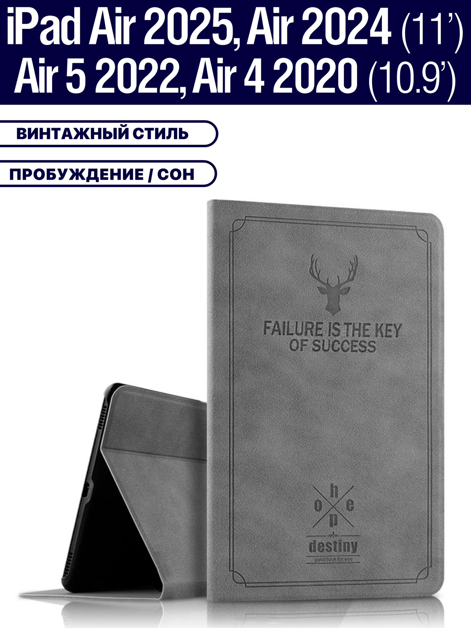 Отзывы на Чехол на Apple iPad Air 11 2025 (M3), Air 11 2024 (M2), Air 5 2022, Air 4 2020, кожаный с тиснением, винтажный стиль (серый)