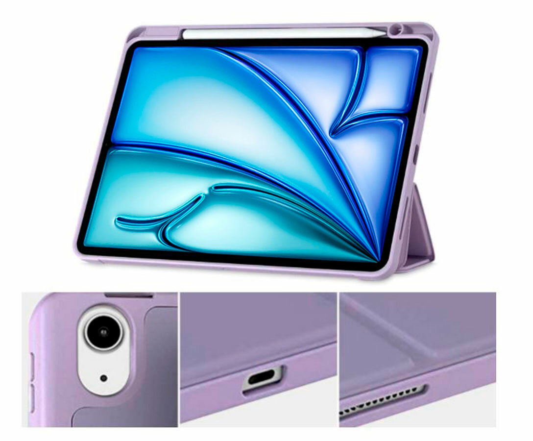 Отзывы на Чехол на Apple iPad Air 11 2025 (M3), Air 11 2024 (M2), Air 5 2022, Air 4 2020, держатель для стилуса (дымчато-фиолетовый)