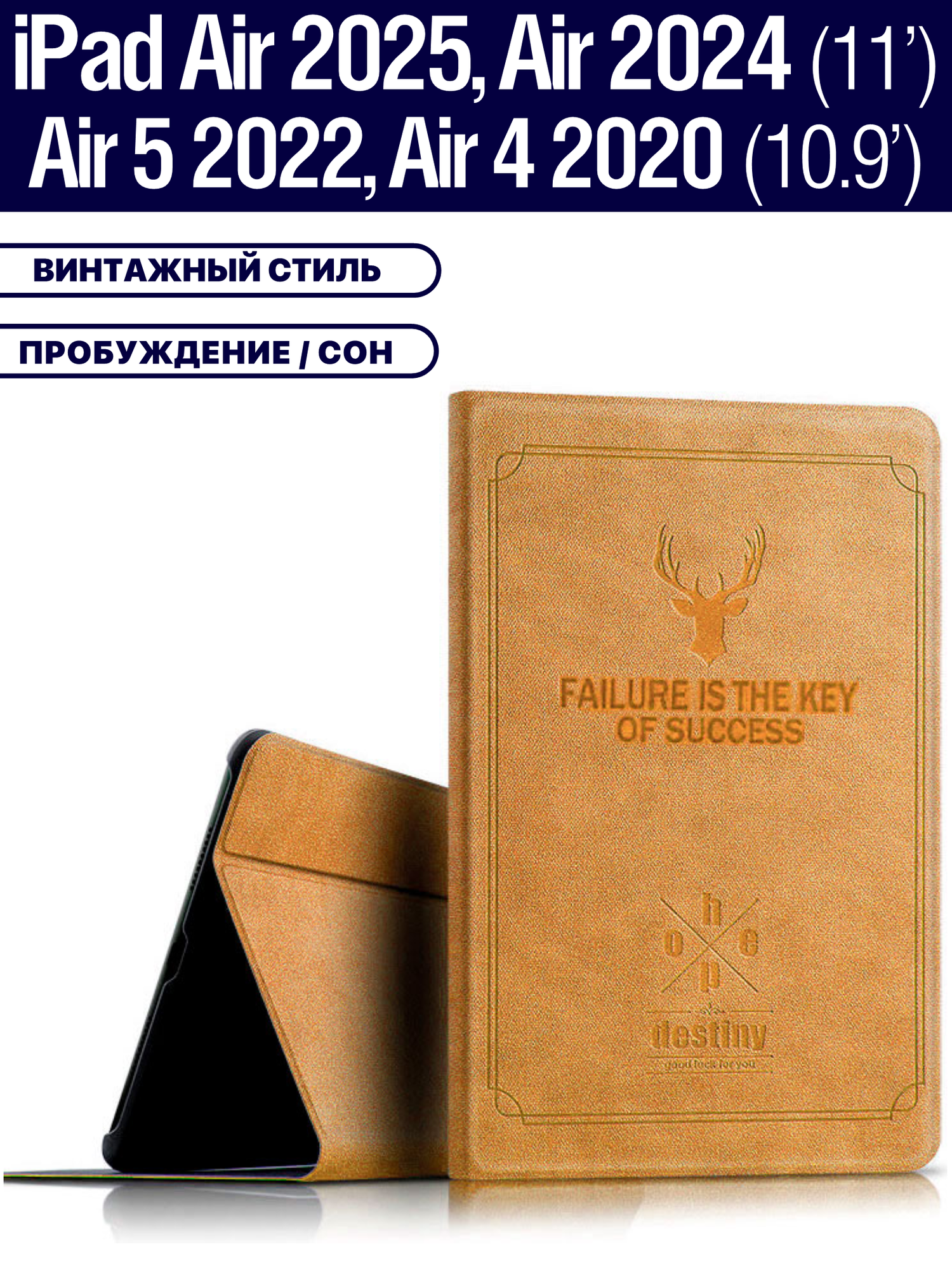 Чехол на Apple iPad Air 11 2025 (M3), Air 11 2024 (M2), Air 5 2022, Air 4 2020, кожаный с тиснением, винтажный стиль (светло-коричневый) информация: