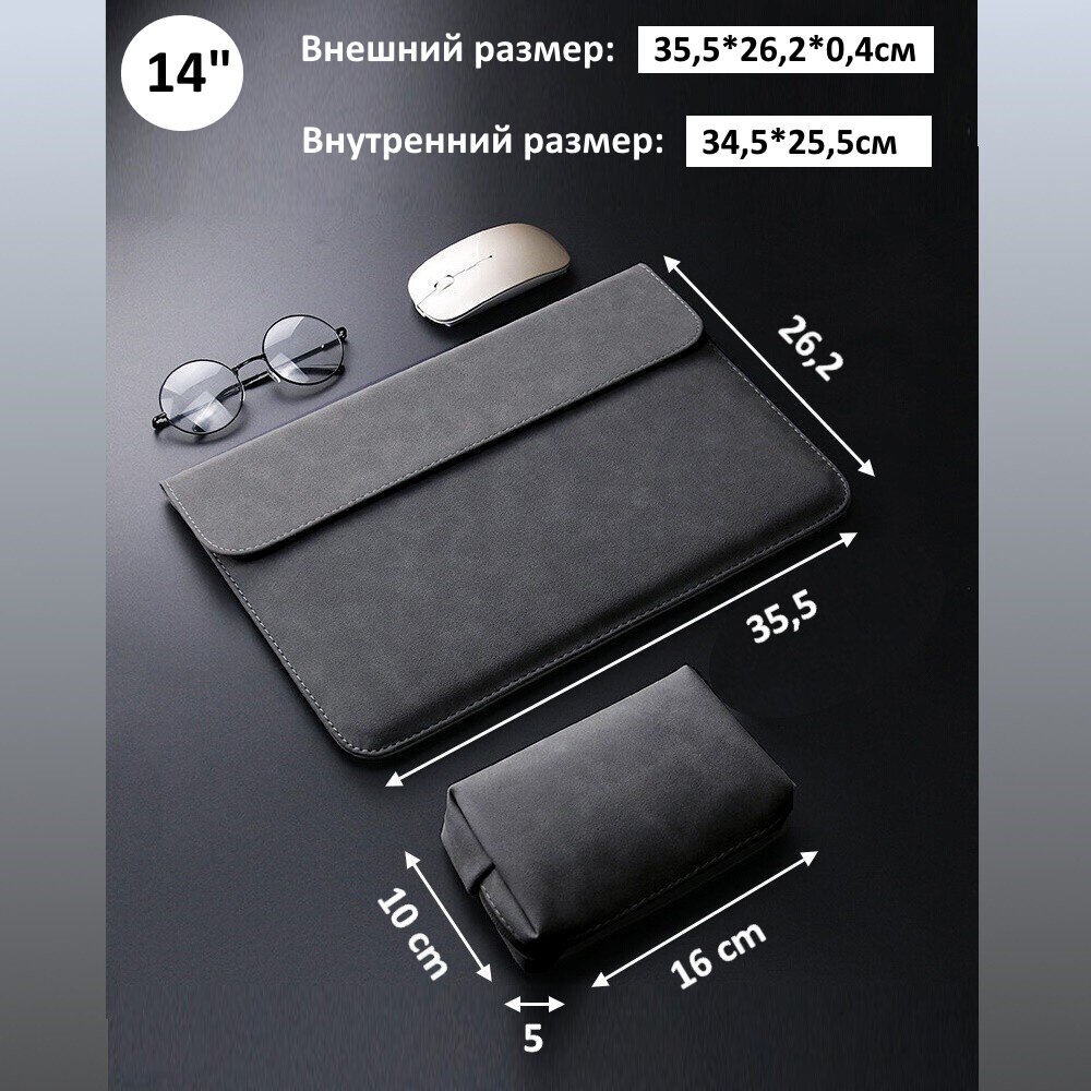 Чехол для макбука, ноутбука до 14" из эко-замши, с сумкой для аксессуаров, для MacBook Pro 14, Серый информация: