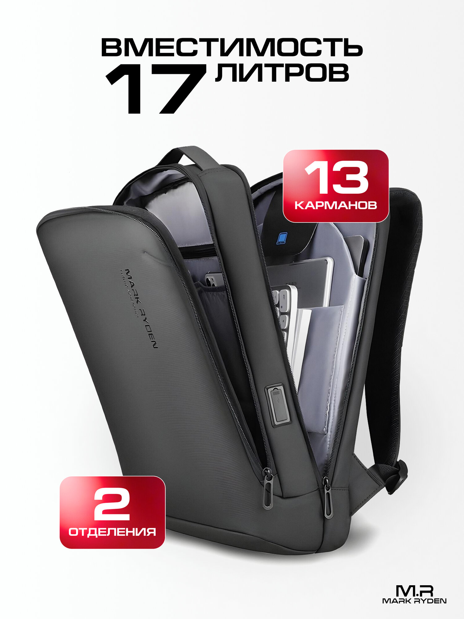 Отзывы на Рюкзак для ноутбука 17,3 Mark Ryden DIGITAL мужской/женский 17 л. Черный городской водонепроницаемый рюкзак с USB-портом дорожный, городской, подарок мужчине, подарок мужу