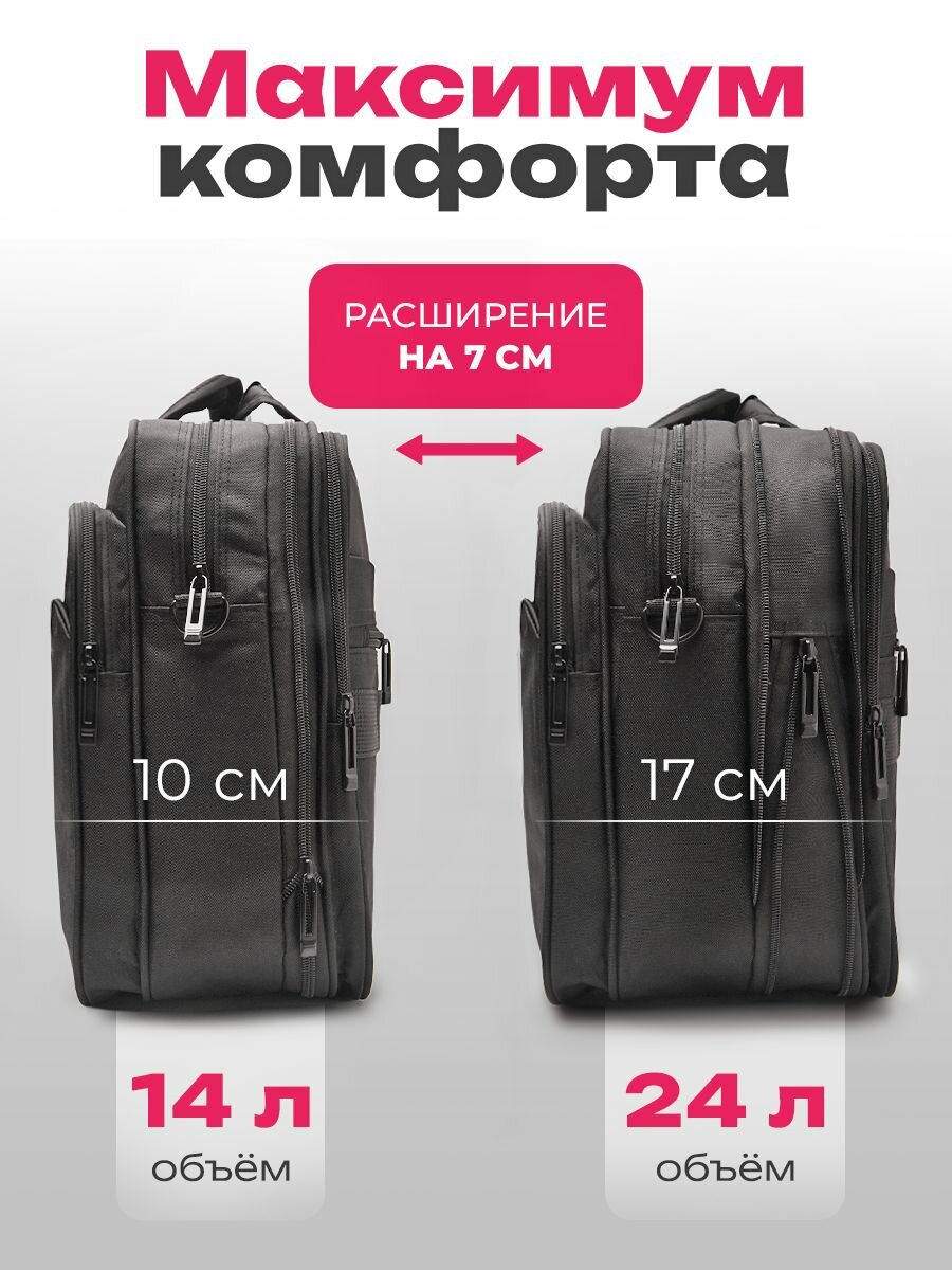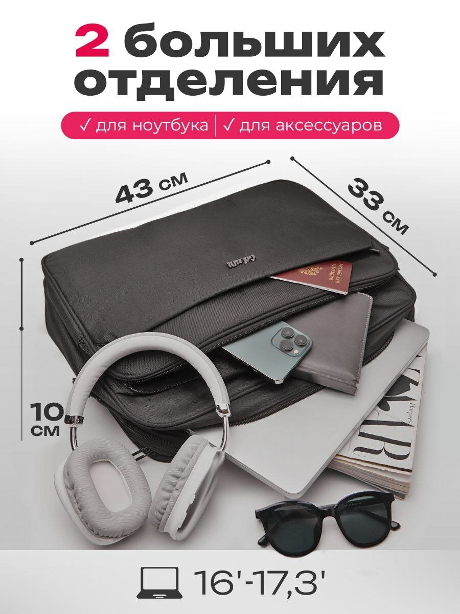 Сумка для ноутбука 17.3 и документов А4 трансформер, черный, 2 больших отделения информация:
