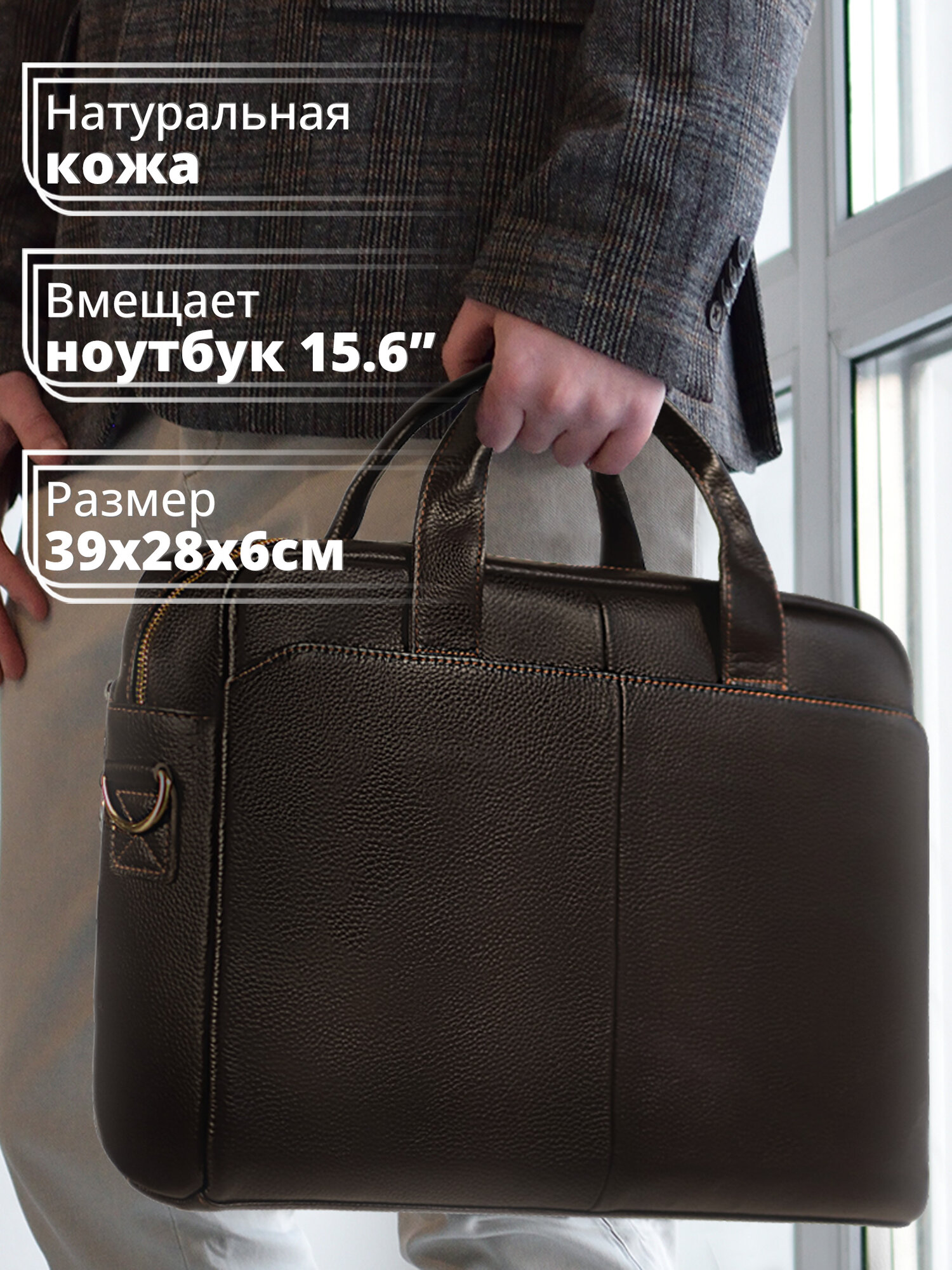 Отзывы на Сумка для ноутбука кожаная 39х28см RAYNFIELD - Темно-коричневая (LBGM-015-DB)