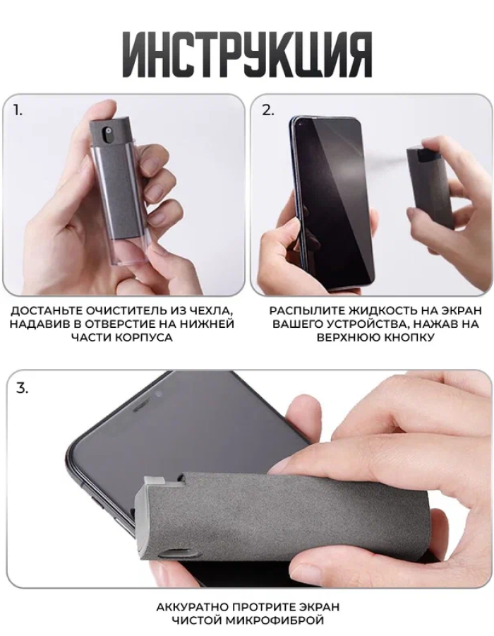 Набор для очистки экранов спрей с микрофиброй и жидкостью цвет салфетки темно-серый 431 ₽