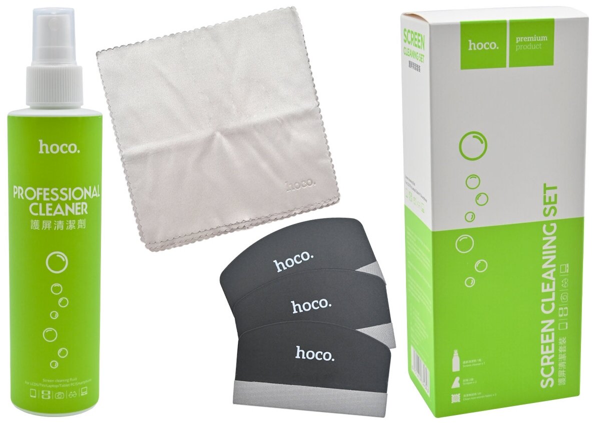 Набор для очистки HOCO Cleaning Kit, для смартфона/экрана/плоттера, спрей/салфетки/скребки информация: