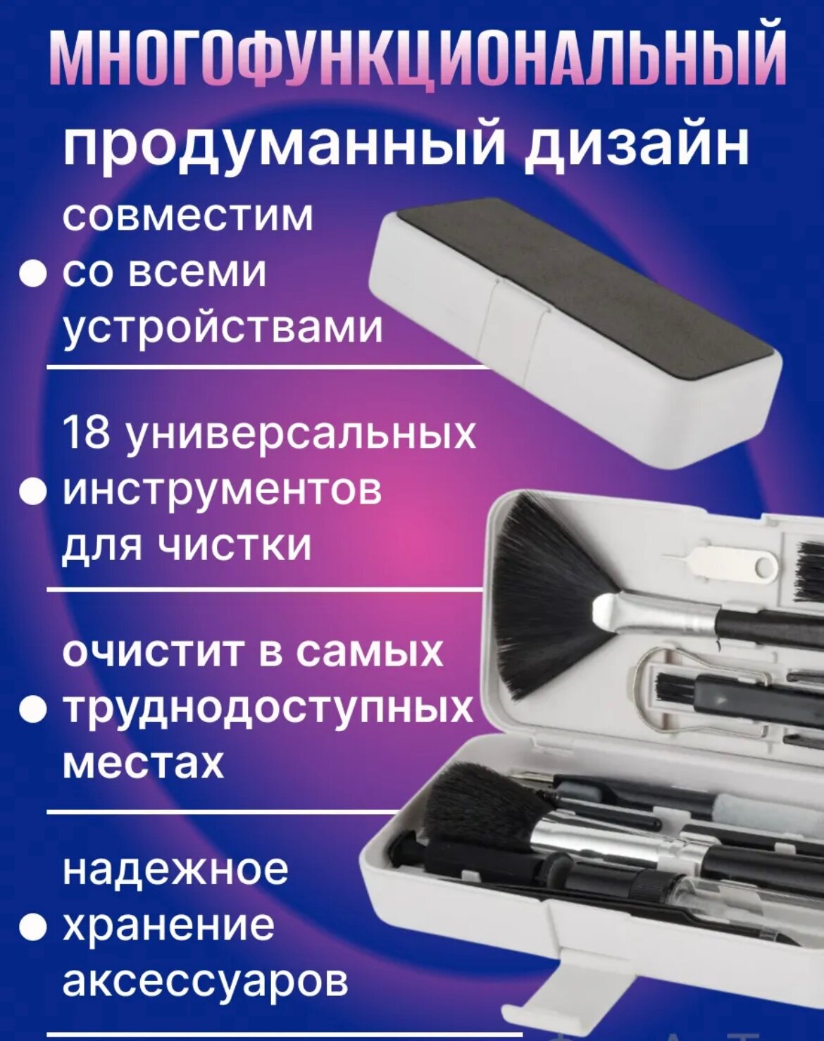 Отзывы на Многофункциональный набор для чистки гаджетов и аксессуаров 18 в 1