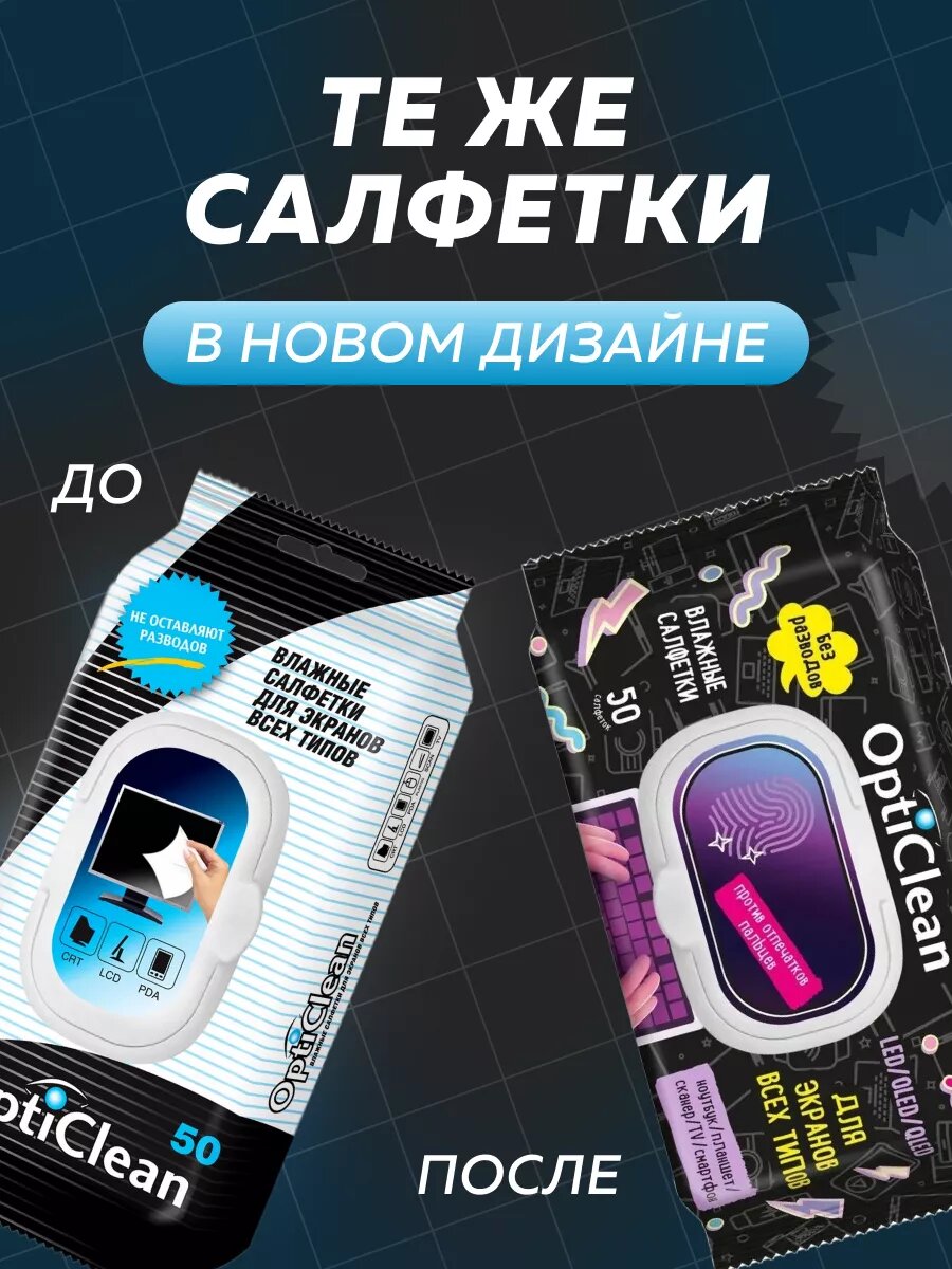 10 цен на Влажные салфетки OptiClean для монитора 50 шт