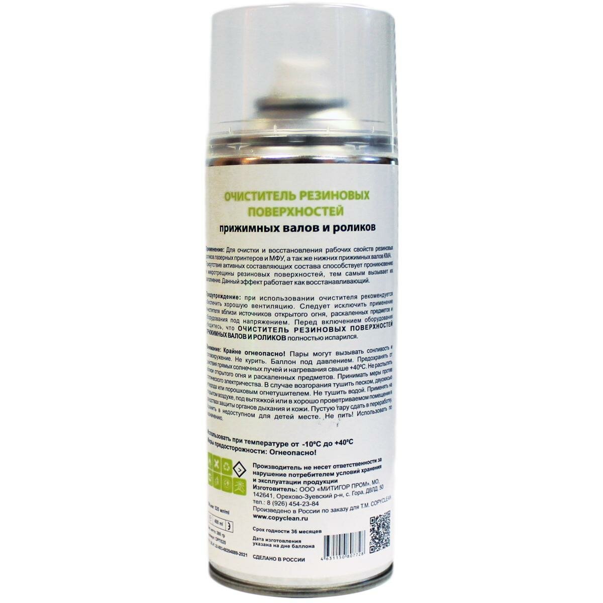 Чистящее средство CopyClean для очистки и восстановления резиновых валов, роликов принтеров и КМА (520ml, аэрозоль) информация: