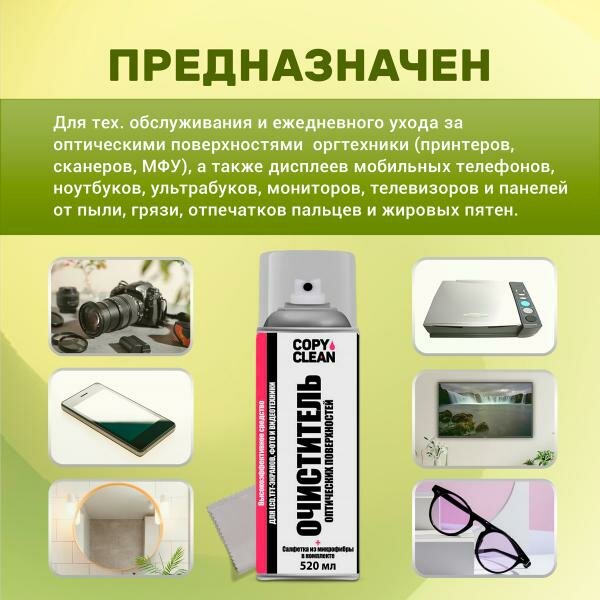 10 цен на Набор для чистки CopyClean экранов (LCD, TFT, теле-, фото-видео и оргтехники) аэрозоль 520ml +салфетка из микрофибры)