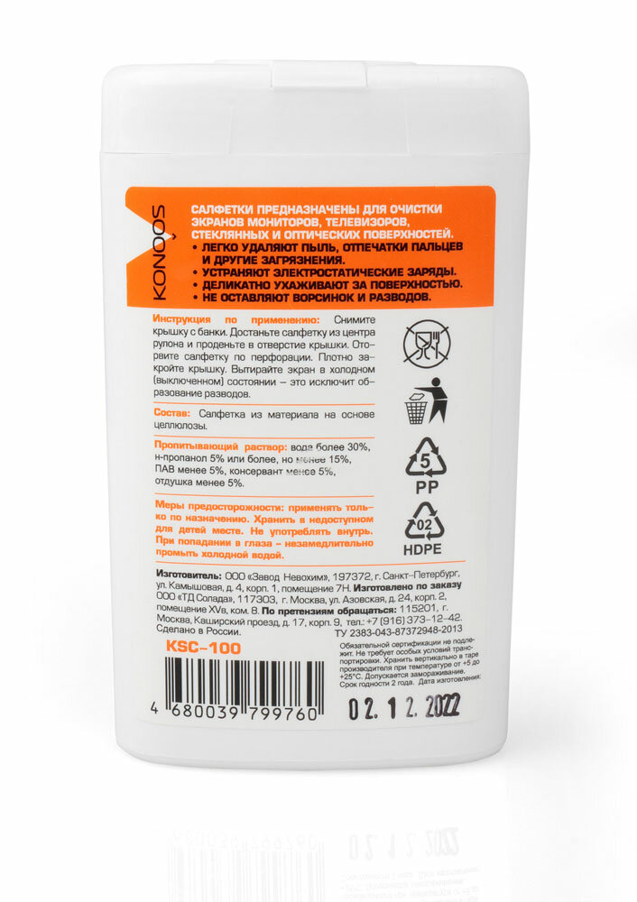 Салфетки для ЖК-экранов Konoos в компактной банке 100 шт KSC-100 информация: