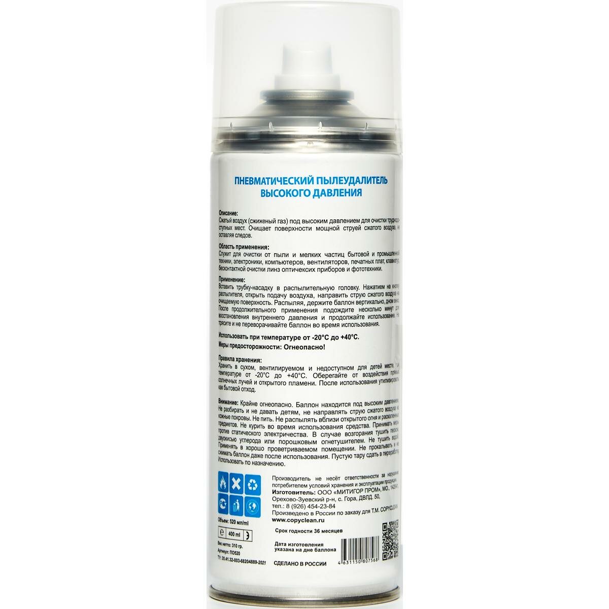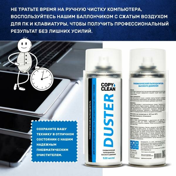 Сжатый воздух CopyClean Duster 520 мл пневмораспылитель для очистки оргтехники информация: