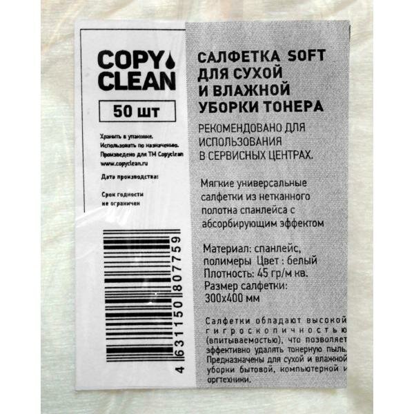 Салфетки CopyClean для тонера Soft мягкие с абсорбирующим эффектом (30х40см, 50шт) информация: