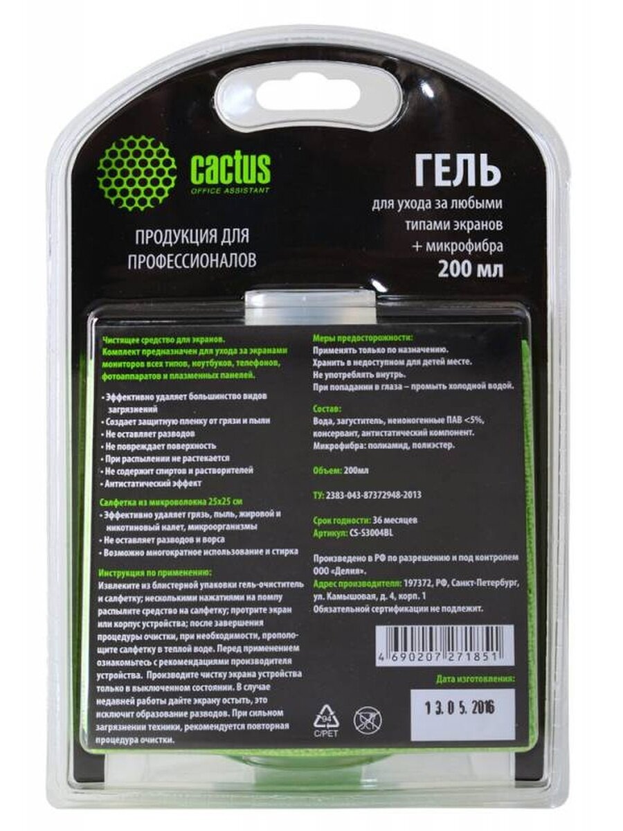 Чистящий набор Cactus CS-S3004BL для экранов и оптики информация: