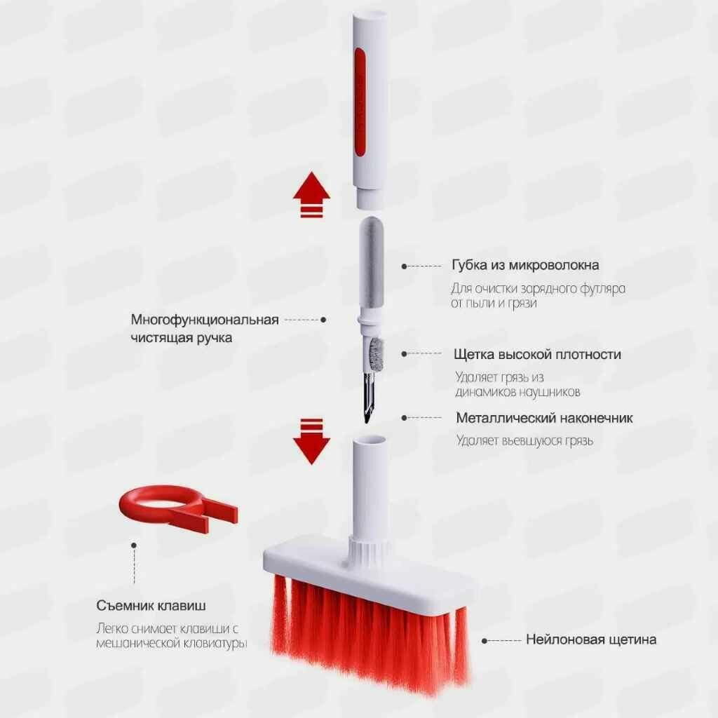 10 цен на Универсальный набор Hagibis для чистки клавиатуры и наушников, 5 в 1, цвет Бело-красный