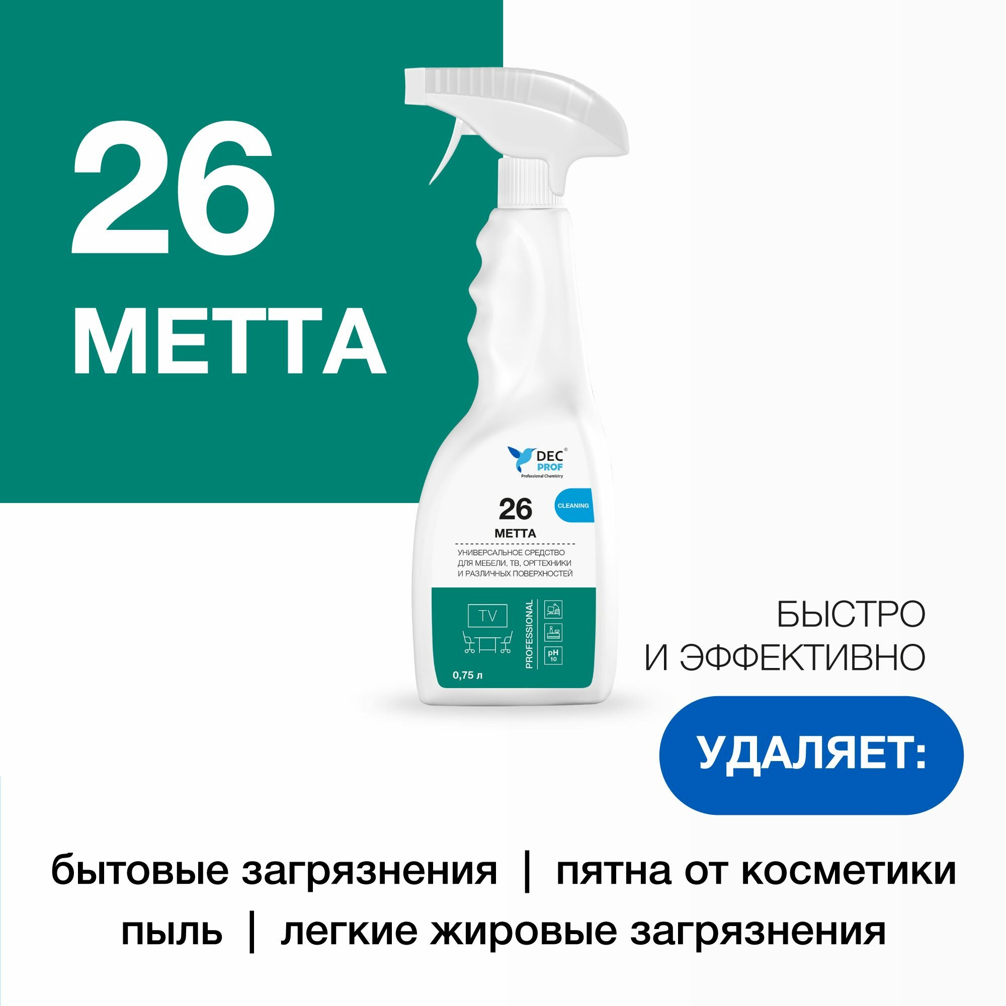 Универсальное средство для мебели, ТВ, оргтехники и различных поверхностей DEC PROF 26 METTA 750 мл информация: