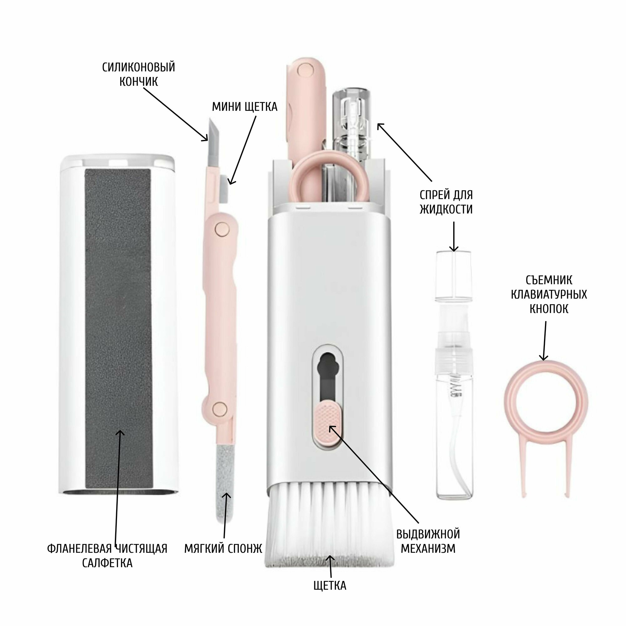 Многофункциональный набор для чистки гаджетов 7в1, белый Don Pavlova, для наушников, для телефона, для клавиатуры