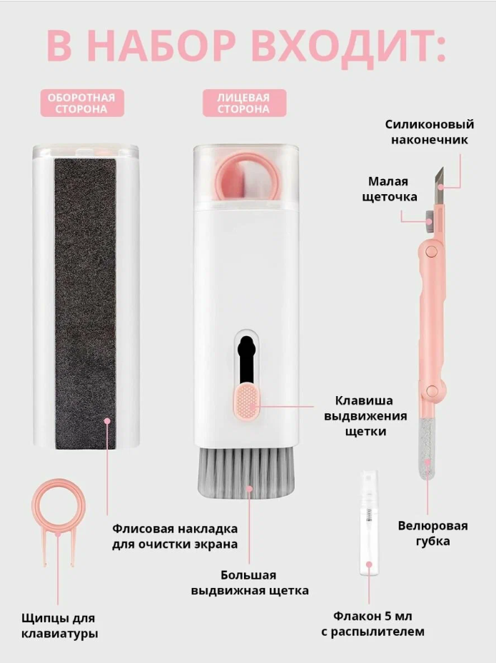 Многофункциональный набор для чистки гаджетов 7в1, белый Don Pavlova, для наушников, для телефона, для клавиатуры
