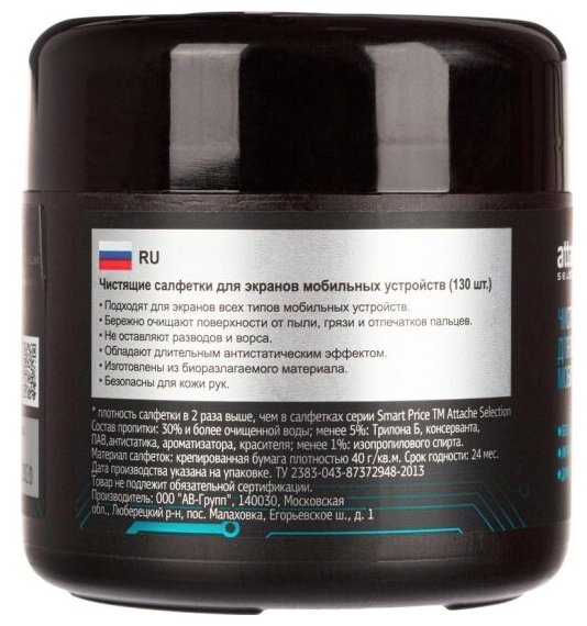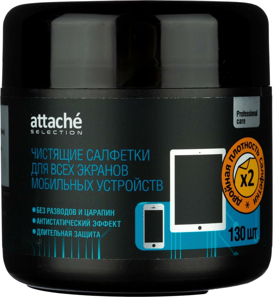 Влажные салфетки Attache Selection для экранов мобильных устройств, 130 шт информация: