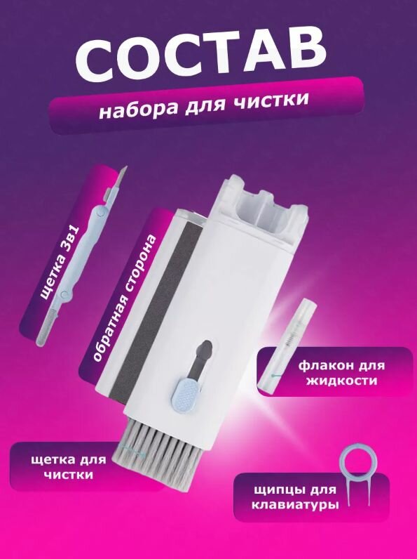 Многофункциональный набор для чистки гаджетов 7в1, белый Don Pavlova, для наушников, для телефона, для клавиатуры