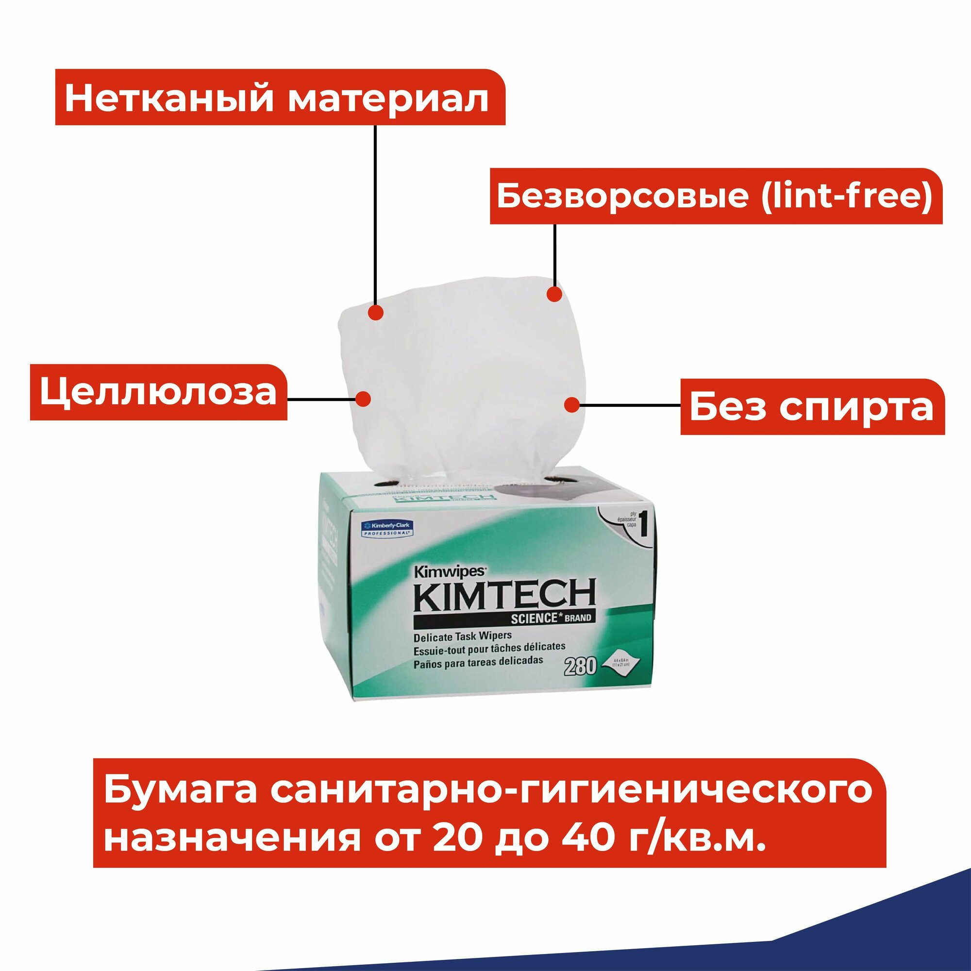 Сухие салфетки безворсовые профессиональные KimWipes Kimtech для смартфонов, часов, волс, оптики, очков, стёкол и маникюра (280 шт) размер 11х21 см. информация: