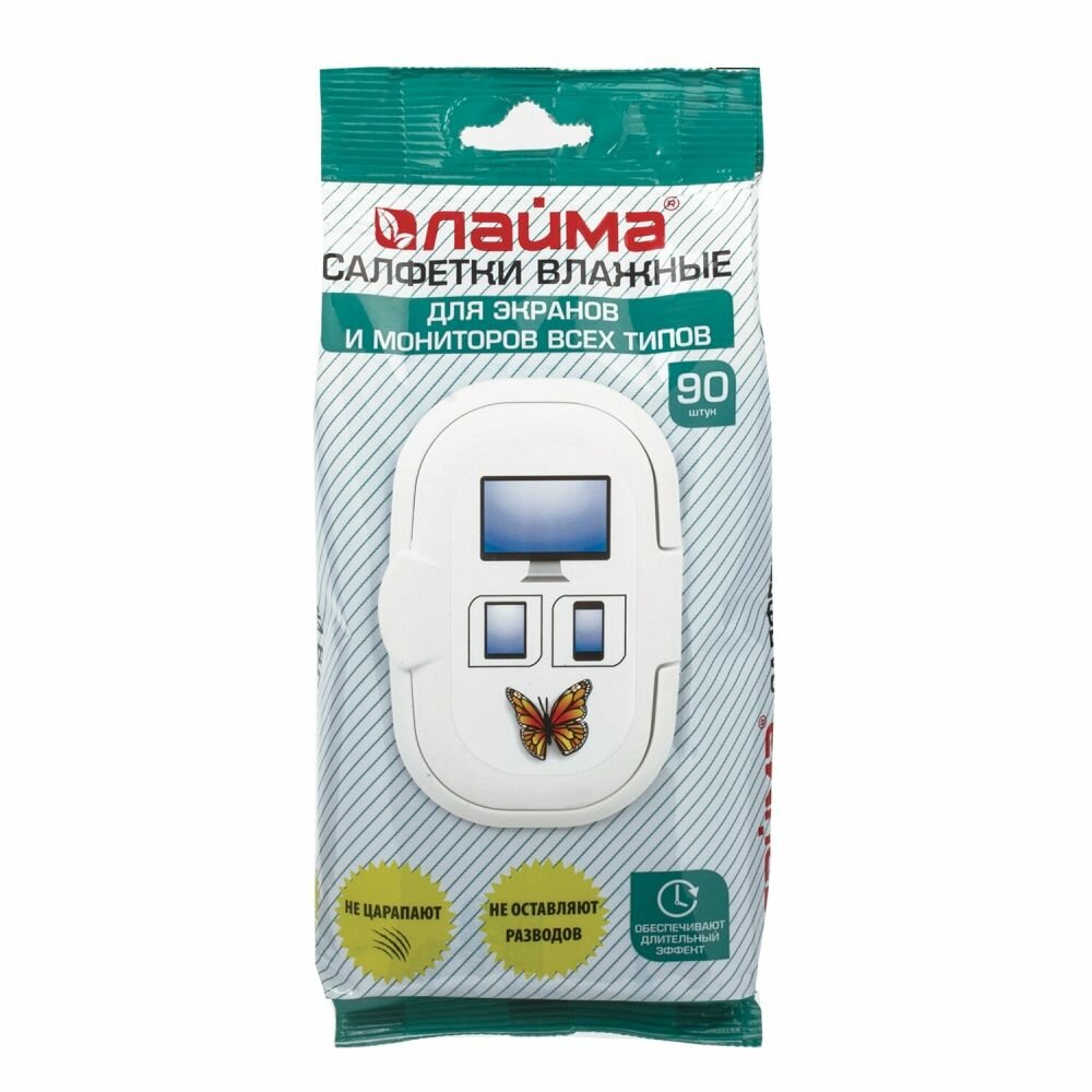 10 цен на 2шт. Салфетки влажные 90 шт. для экранов всех типов и оптики (очки, объективы), клапан, Laima