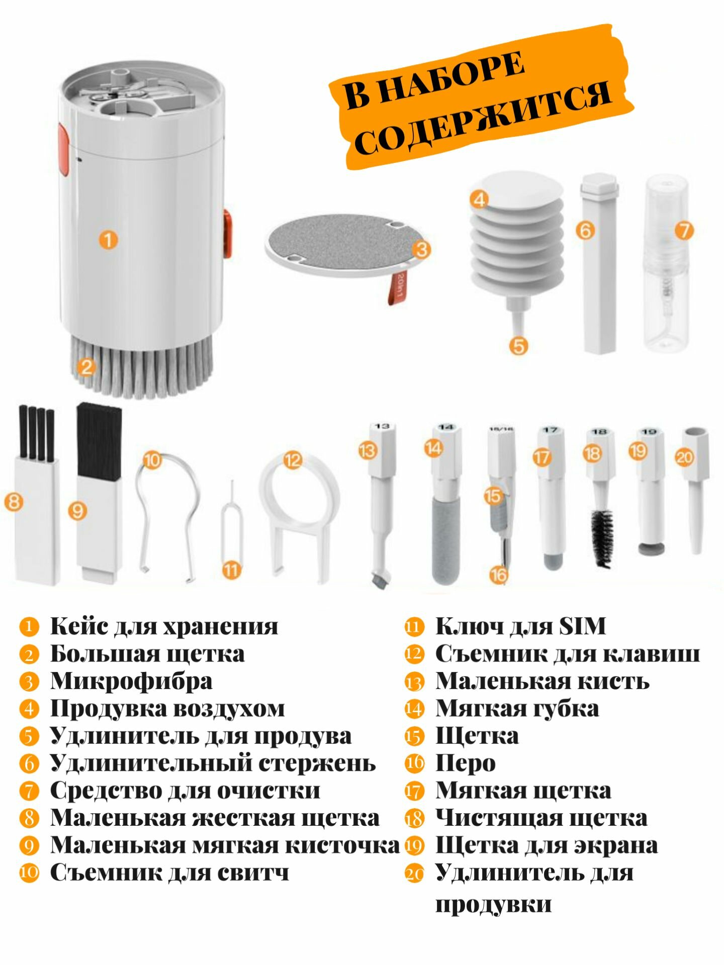 Набор для чистки телефона наушников фотоаппарата клавиатуры гаджетов 20 в 1 информация: