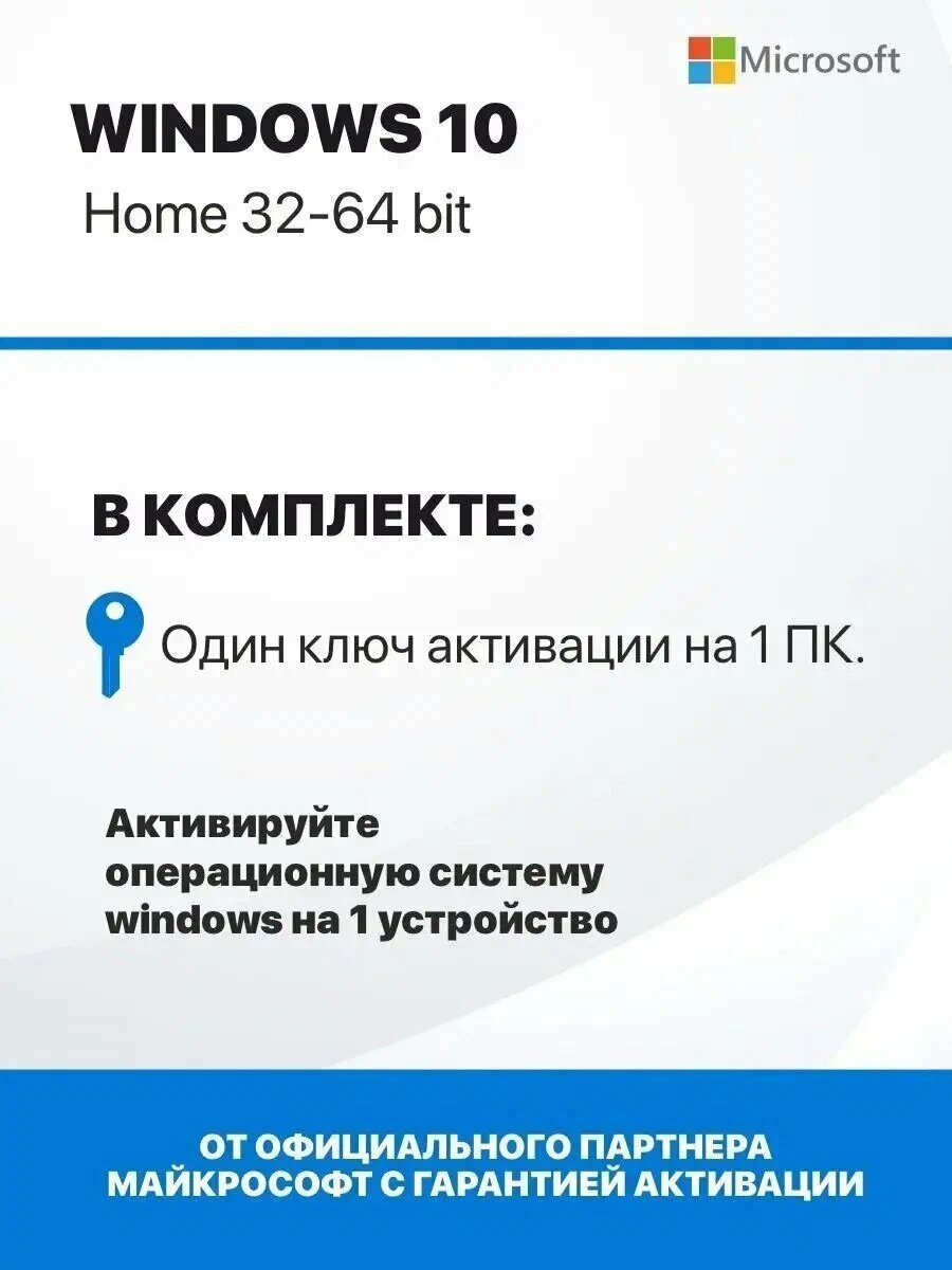 Windows 10 Home (Домашняя) лицензионный ключ для одного ПК/Ноутбука - Бессрочная OEM с привязкой информация: