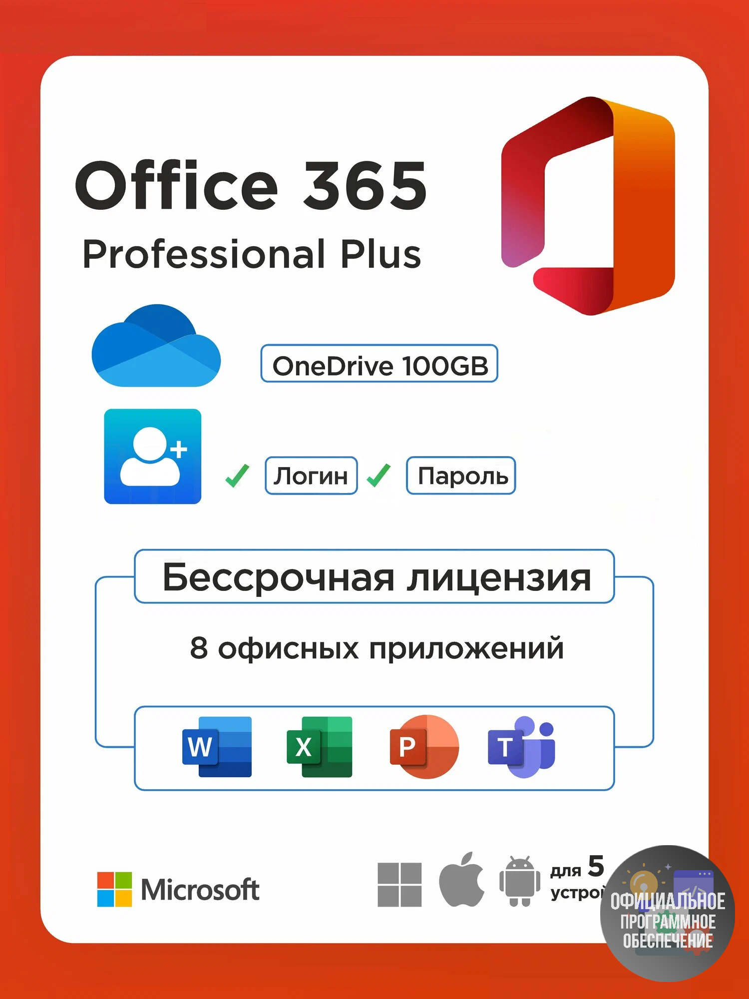 Аккаунт Microsoft Office 365 Pro plus + 100 ГБ OneDrive на 12 месяцев Россия и СНГ информация: