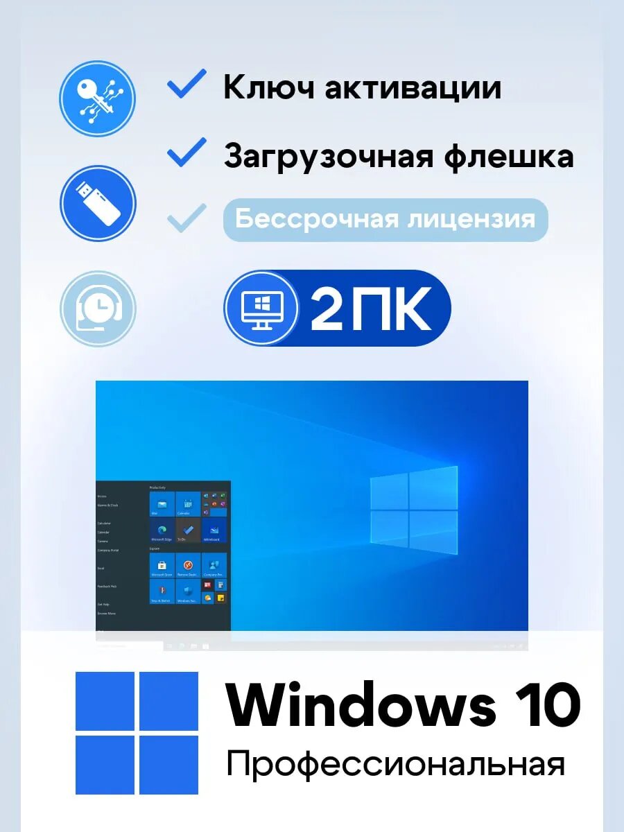 Ключ активации Microsoft Windows 10 Pro, электронный, на 2 компьютера, бессрочный, с загрузочной флешкой информация: