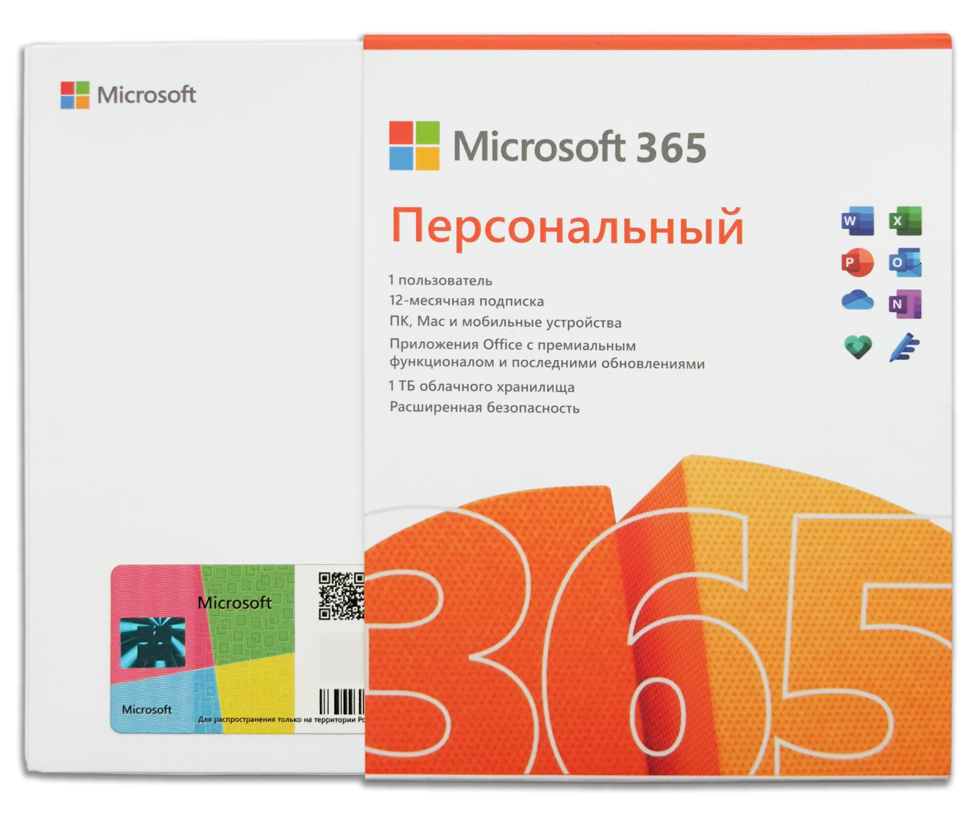 Microsoft Office 365 Персональный, для 1 пользователя, 1 год подписки (с привязкой к аккаунту), Box Slider информация: