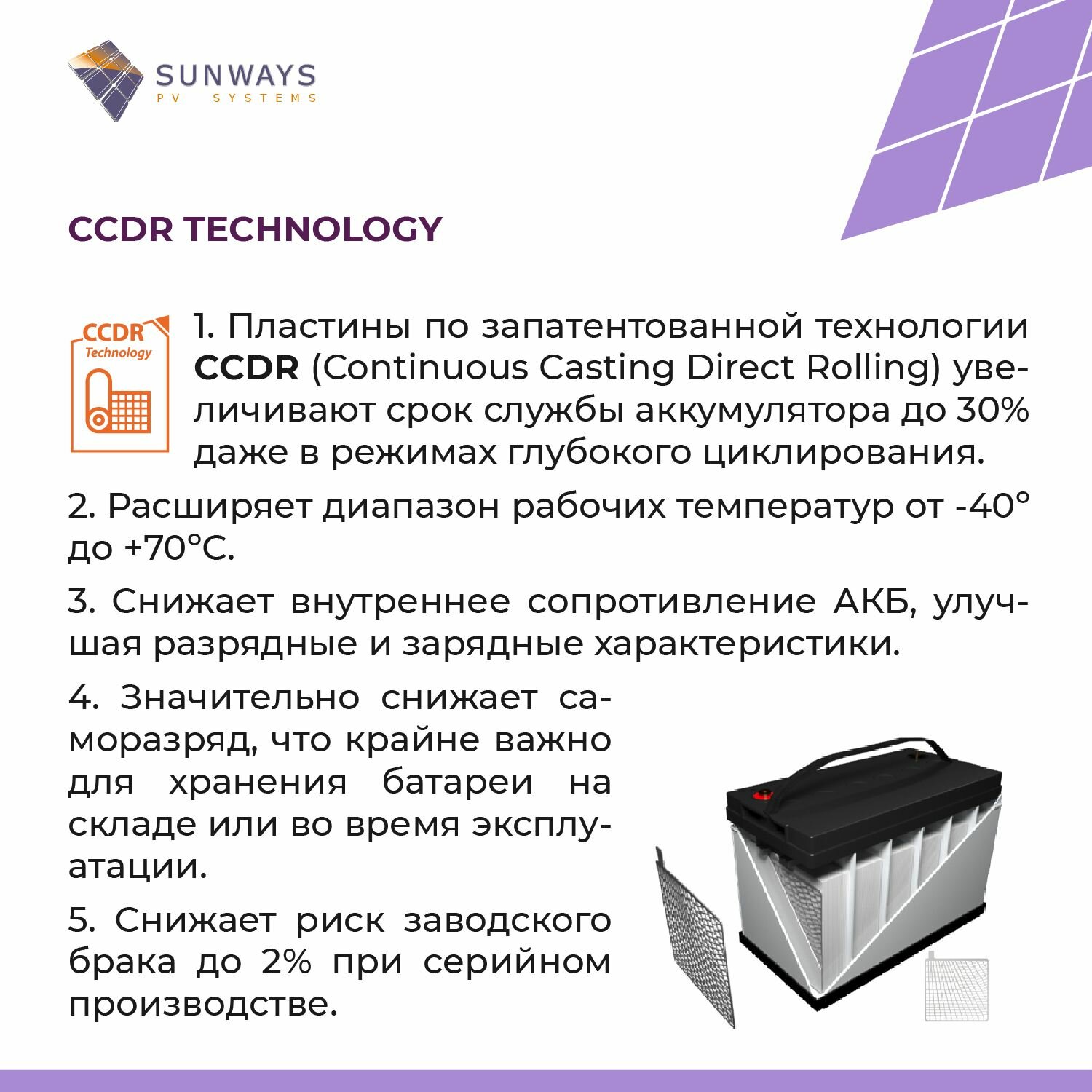 Аккумулятор SUNWAYS GP 12В 65Ач (12V 65Ah), тяговый аккумулятор, для ИБП, 1 шт информация: