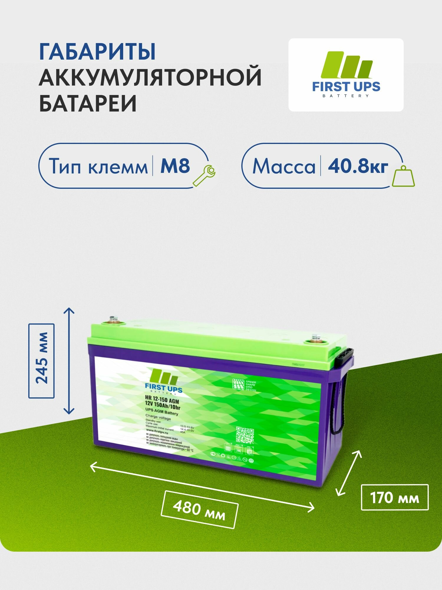 Аккумулятор FIRST UPS HR 12-150 AGM, 12 В, 150 Ач, 480x245x170 мм, 1 шт. информация: