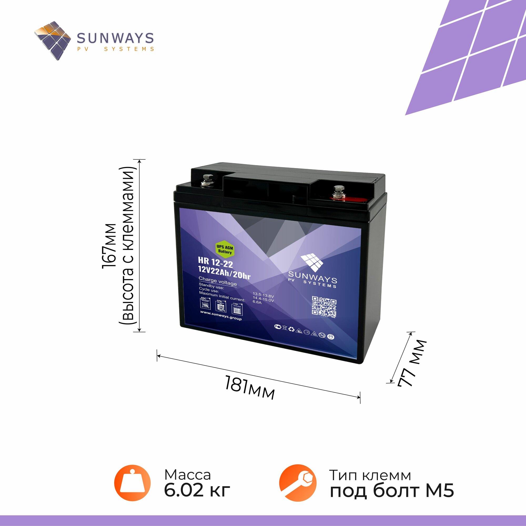 Аккумулятор для ИБП SUNWAYS UPS HR 12-22, Аккумулятор для ИБП информация: