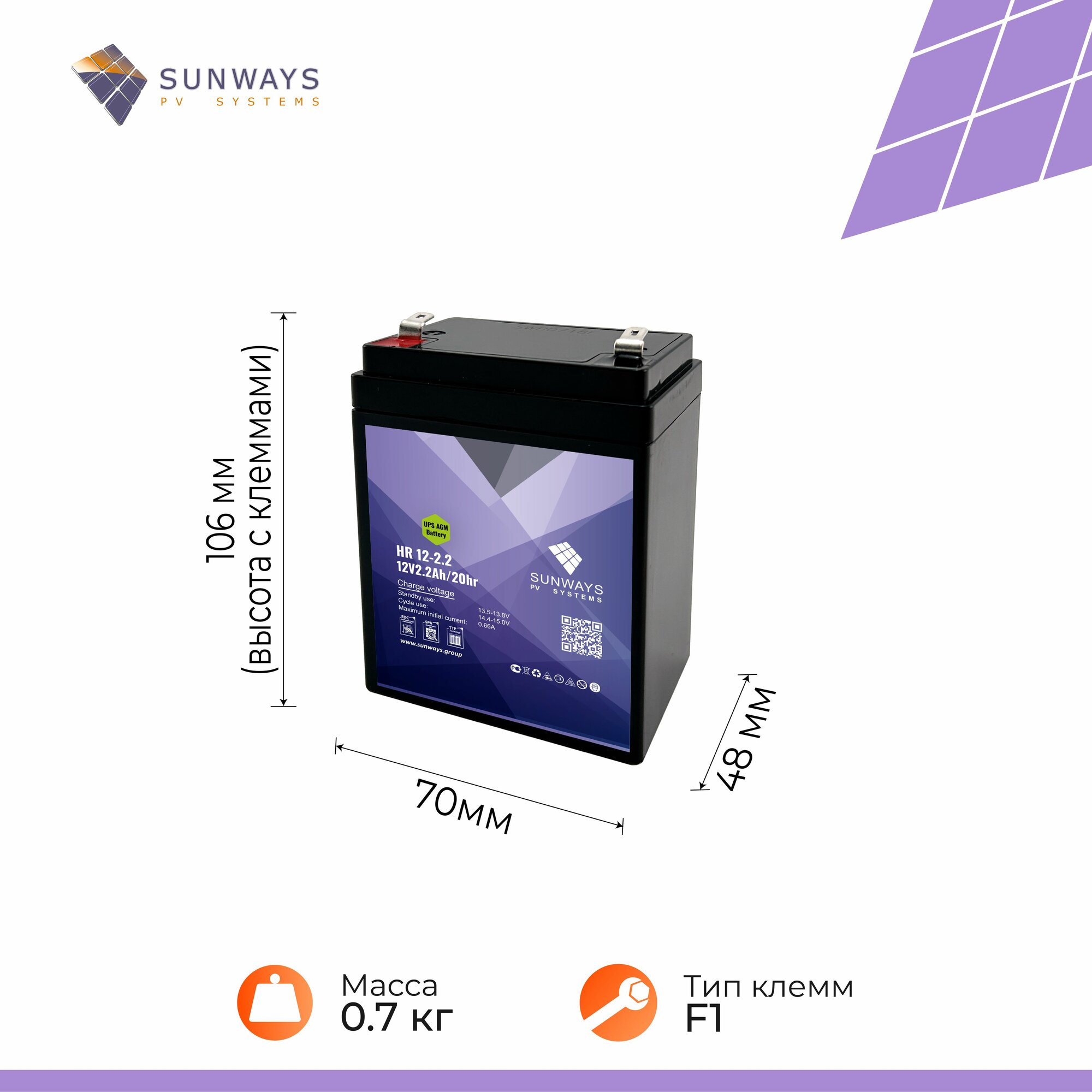 Аккумулятор для ИБП SUNWAYS UPS HR 12-2.2, Аккумулятор для ИБП информация: