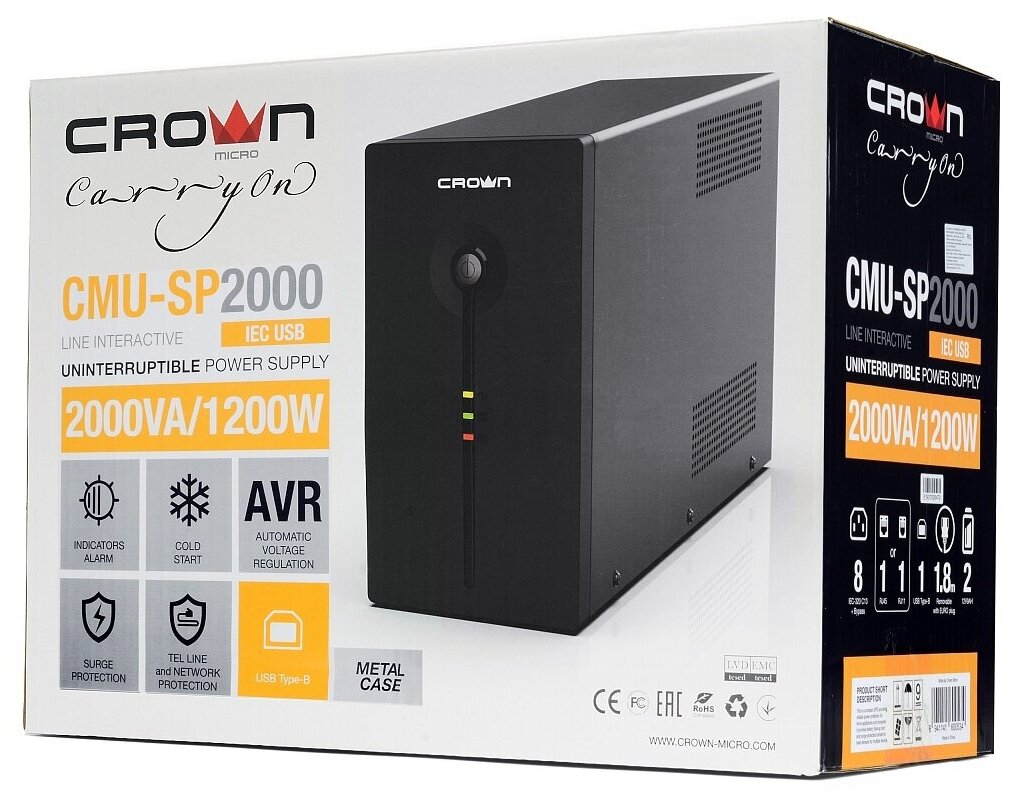 Источник бесперебойного питания Crown Micro CROWN Line Interactive CMU-SP2000IEC USB (CM000003132) информация: