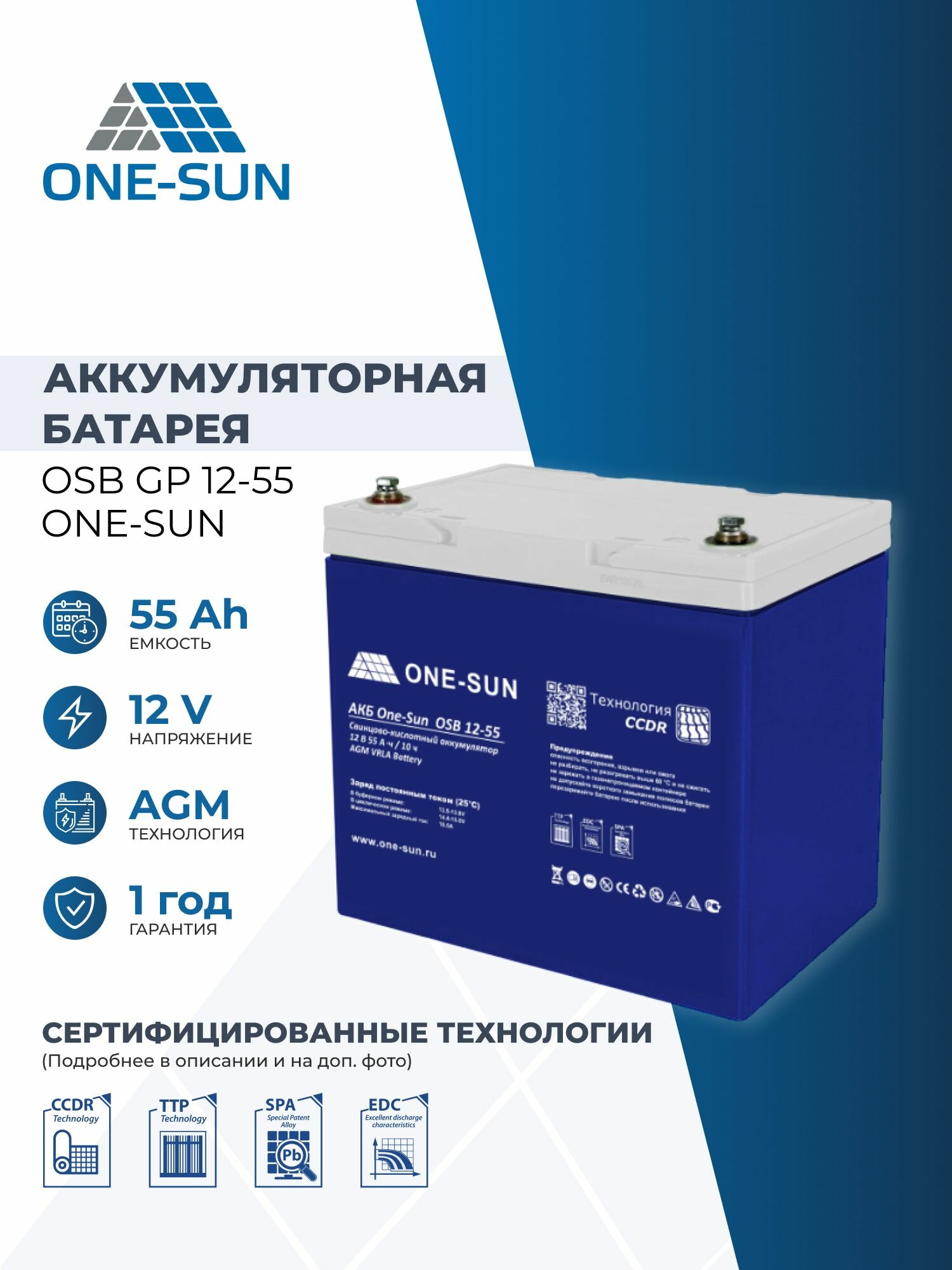 10 цен на Аккумулятор ONE-SUN OSB GP 12В 55Ач (12V 55Ah), тяговый аккумулятор, для ИБП, 1 шт.