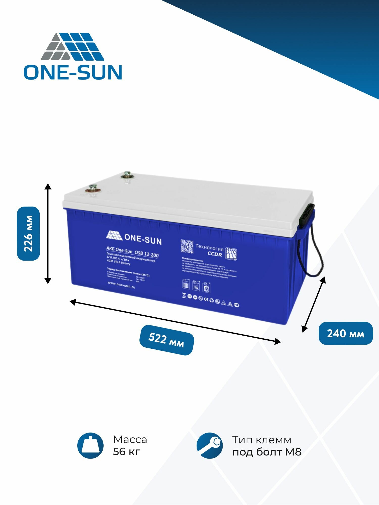 10 цен на Аккумулятор ONE-SUN OSB GP 12В 200Ач (12V 200Ah), тяговый аккумулятор, для ИБП, 1 шт.