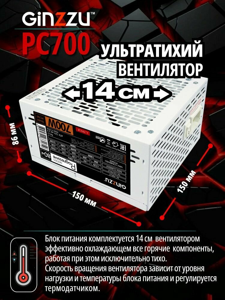 Блок питания Ginzzu PC700 14CM 80+ (Белый ). Гарантия 3 года. информация: