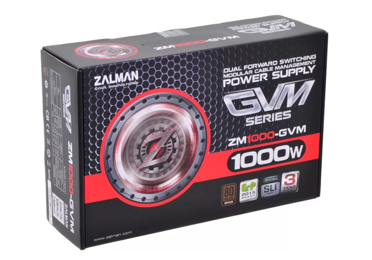 10 цен на Блок питания Zalman ZM1000-GVM, черный, 1000Вт, ATX, 80PLUS Bronze, 1 вентилятор 14 см