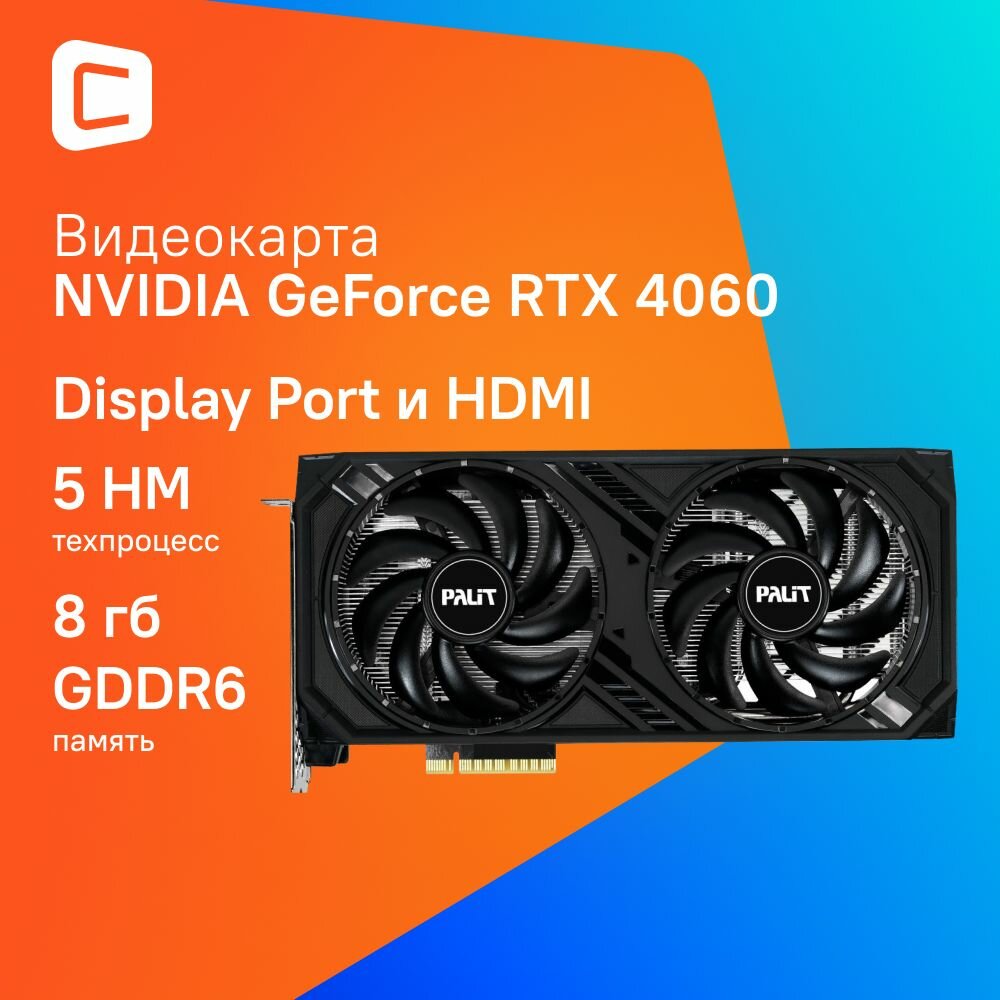 Видеокарта Palit PCI-E 4.0 RTX4060 DUAL NV RTX4060 8Gb 128bit GDDR6 1830/17000/HDMIx1/DPx3/HDCP Ret информация:
