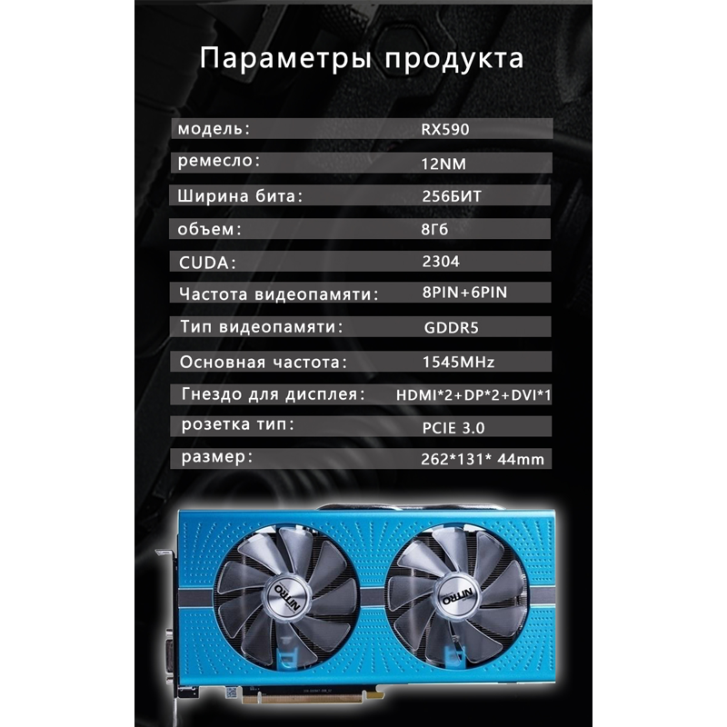 Игровая дискретная видеокарта SAPPHIRE RX590 емкостью 8 ГБ Двойной вентилятор информация: