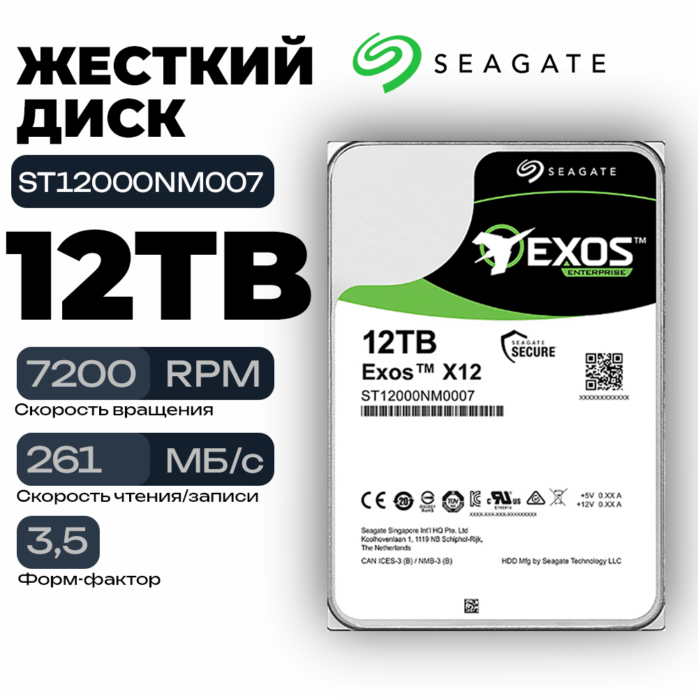 Жесткий диск Seagate "ST12000NM0007", 12ТБ, 3,5", SATA 6GB/s, 7200об/мин информация: