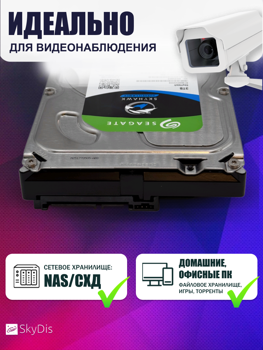 Жесткий диск Seagate Skyhawk 3 Tb ST3000VX009 информация: