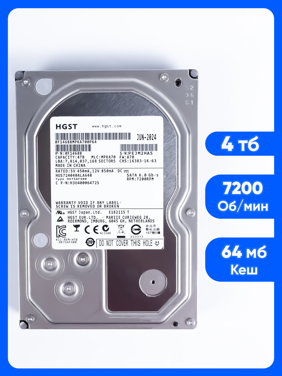 Характиристики этого товара не найдены!Отзывы на 3.5" жесткий диск HGST Ultrastar 7K4000 (HUS724040ALA640) 4ТБ, 7200Об/мин, 64МБ
