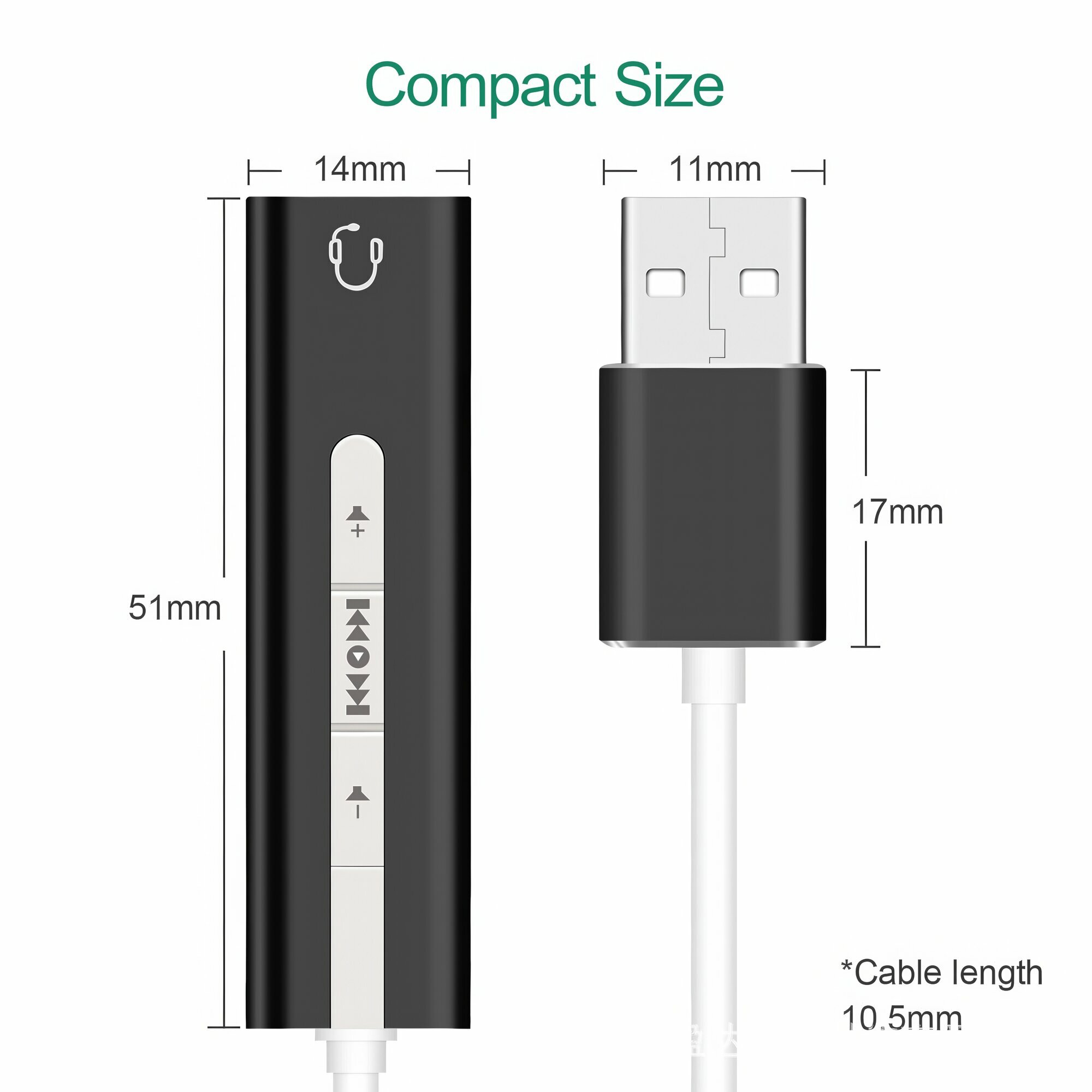 Звуковая карта 7.1 с регулировкой громкости и гарнитурой для мобильного использования, черный информация: