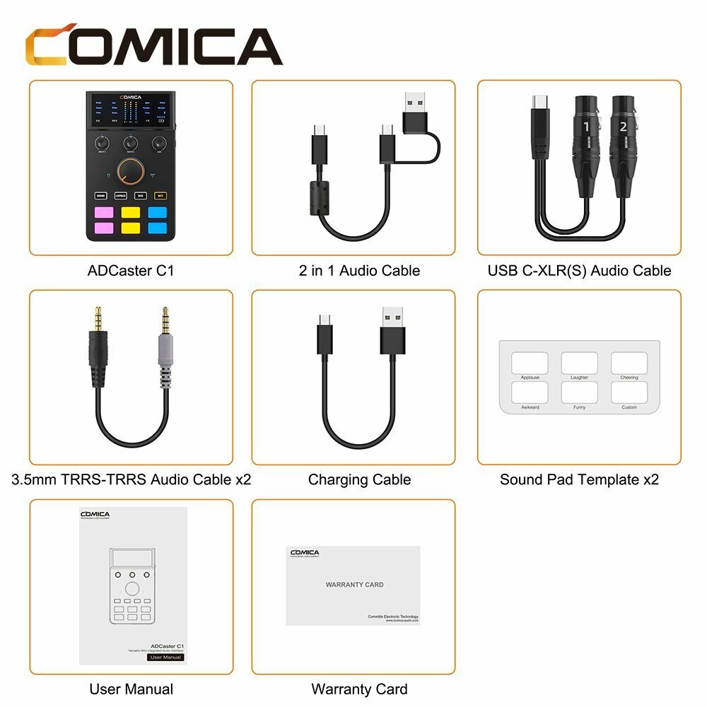 COMICA AD Caster C1 Аудиомикшер USB-аудиоинтерфейс Звуковая карта с портами 3,5 мм Поддерж, Andoer информация: